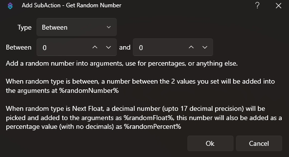 Примітка. Будь-який sub-action, який має текстове поле, може приймати аргументи, чи змінні.