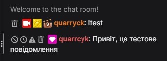 Тепер перевіримо. Заходимо в наш чат і пишемо команду !test і бачимо результат в чаті