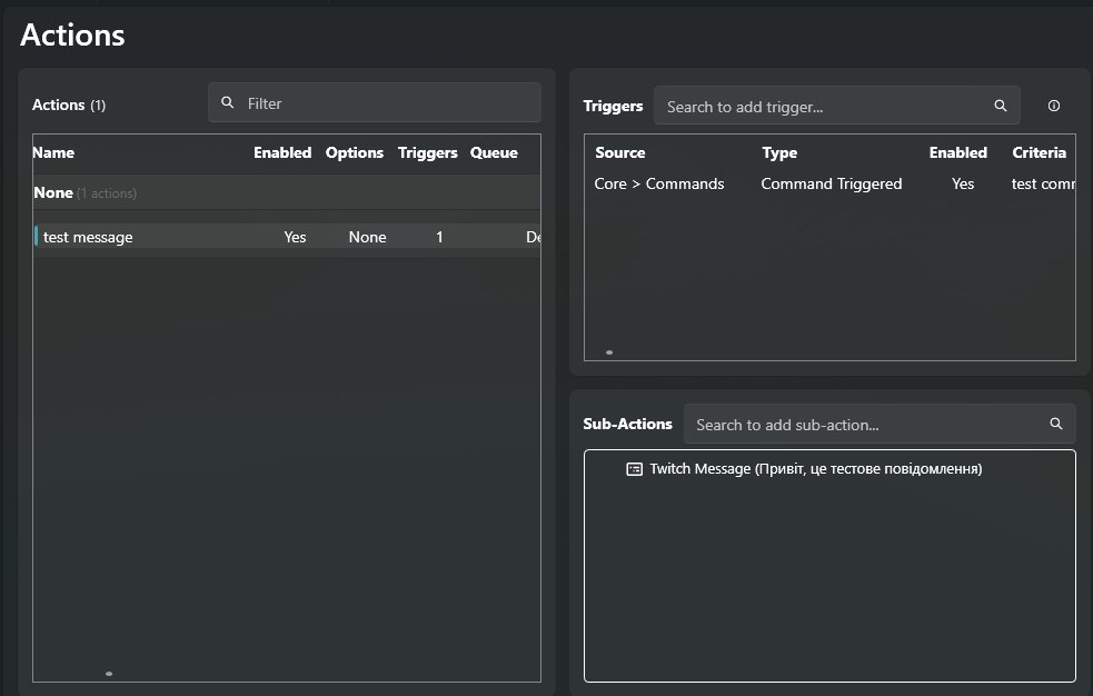 SB має в собі потужний інструмент робити різноманітні інтеграції для глядачів на Twitch. Не лише створення команд, а підключення до API, побудова Віджетів, івентів та речей, які лише обмежуються вашою фантазією. У майбутніх статтях, ми розберемо детальніше, які бувають тригери і під-дії.