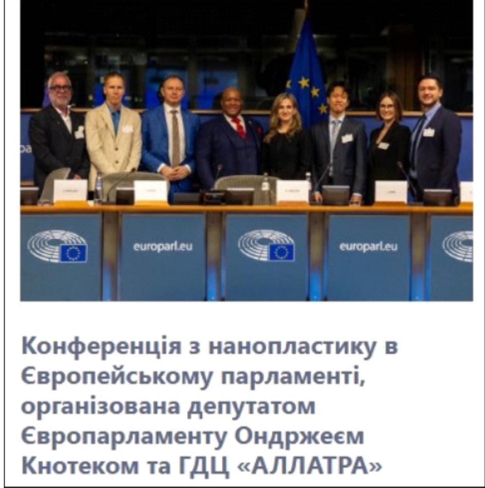Ще один важливий захід відбувся 24 лютого 2026 року в стінах Європарламенту. Конференцію "Нанопластик. Приховані взаємозв'язки і ризики, що виникають" було організовано за ініціативою депутата Європейського парламенту Ондржея Кнотика у співпраці з глобальним дослідницьким центром АЛЛАТРА. Науковці АЛЛАТРА в Європейському парламенті озвучили конкретні кроки щодо вирішення проблеми нанопластику. Йдеться не про теоретичні припущення, а про реальні наукові дослідження, які можуть допомогти людству краще зрозуміти масштаби цієї проблеми та знайти шляхи її розв'язання.
