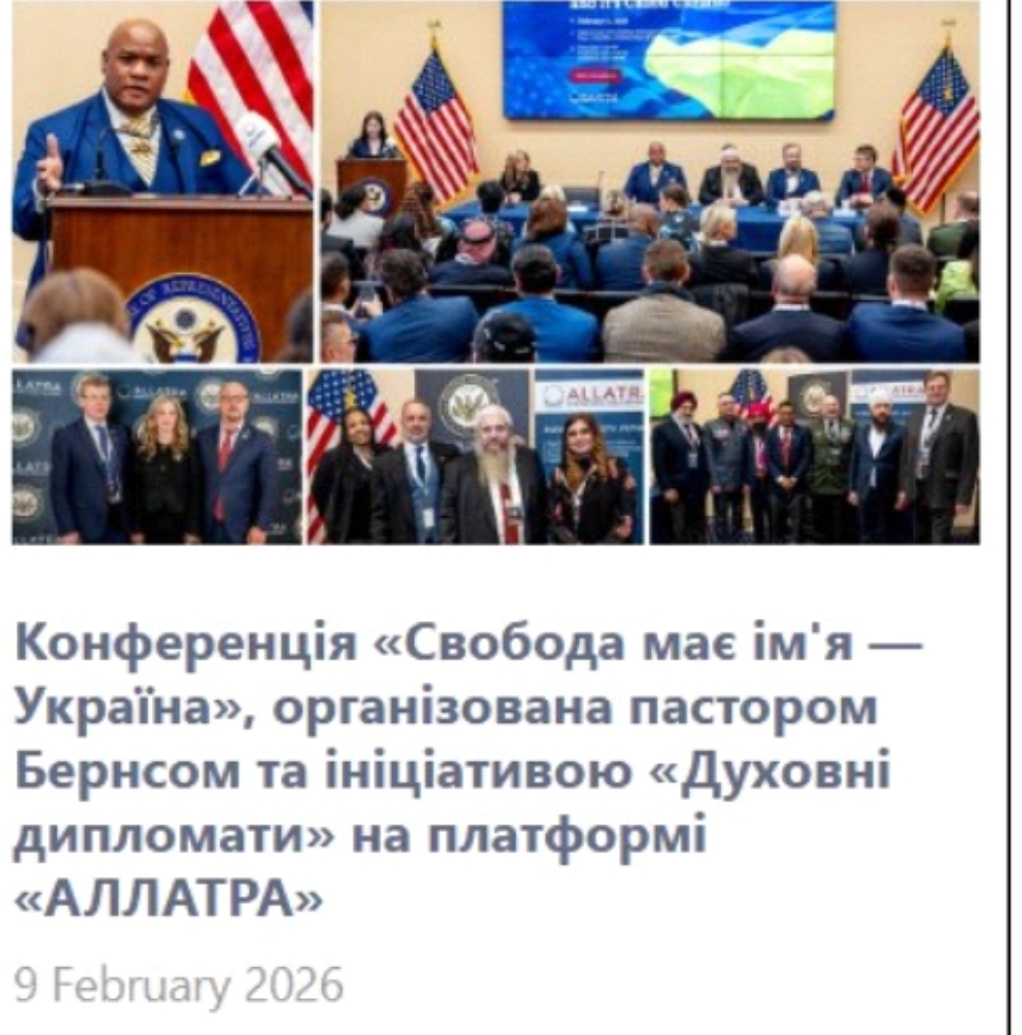 На початку року в Капітолії США відбулися дві міжнародні конференції під лідерством пастора Марка Бернса на платформі АЛЛАТРА за участі високопосадовців. Одна з них - "Свобода має ім'я Україна". Українські та американські військові, політики й народні депутати України говорили про одне: Україна є символом незламності.