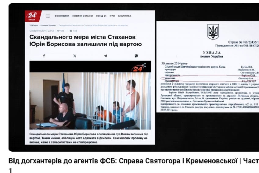 У 2014 Святогор захищав в якості адвоката мера Стаханова Юрія Борисова, якого звинувачували у сепаратизмі, порушенні територіальної цілісності України, проведенні незаконного референдуму по відокремленню областей та створенні ЛНР і ДНР. При цьому, як ми вже показували в минулому випуску, захищаючи сепаратиста та зрадника, він поливав всю Україну брудом. На фоні свого невинного, підзахисного, #Святогор казав, що українське правосуддя схоже на труп, що повільно гниє, а расія з Україною - дружні суверенні держави. Звинувачував у всьому український суд та наполягав на його некомпетентності.