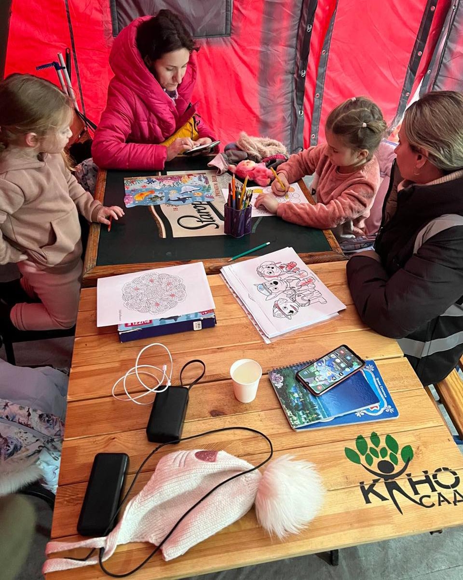 Крім базової допомоги, психологи поліції охорони в межах проєкту «Пункт психологічних практик» подбали й про наймолодших відвідувачів. Для маленьких мешканців провели тепле творче заняття з розмальовок — просту, але важливу артпрактику, що допомагає зняти напругу, абстрагуватися, перемкнути увагу та відчути безпеку. Такі активності дають дітям можливість бодай на деякий час повернутися в більш спокійний ритм — без зайвої тривоги, яку підсилюють холод, темрява та нестабільність навколо.