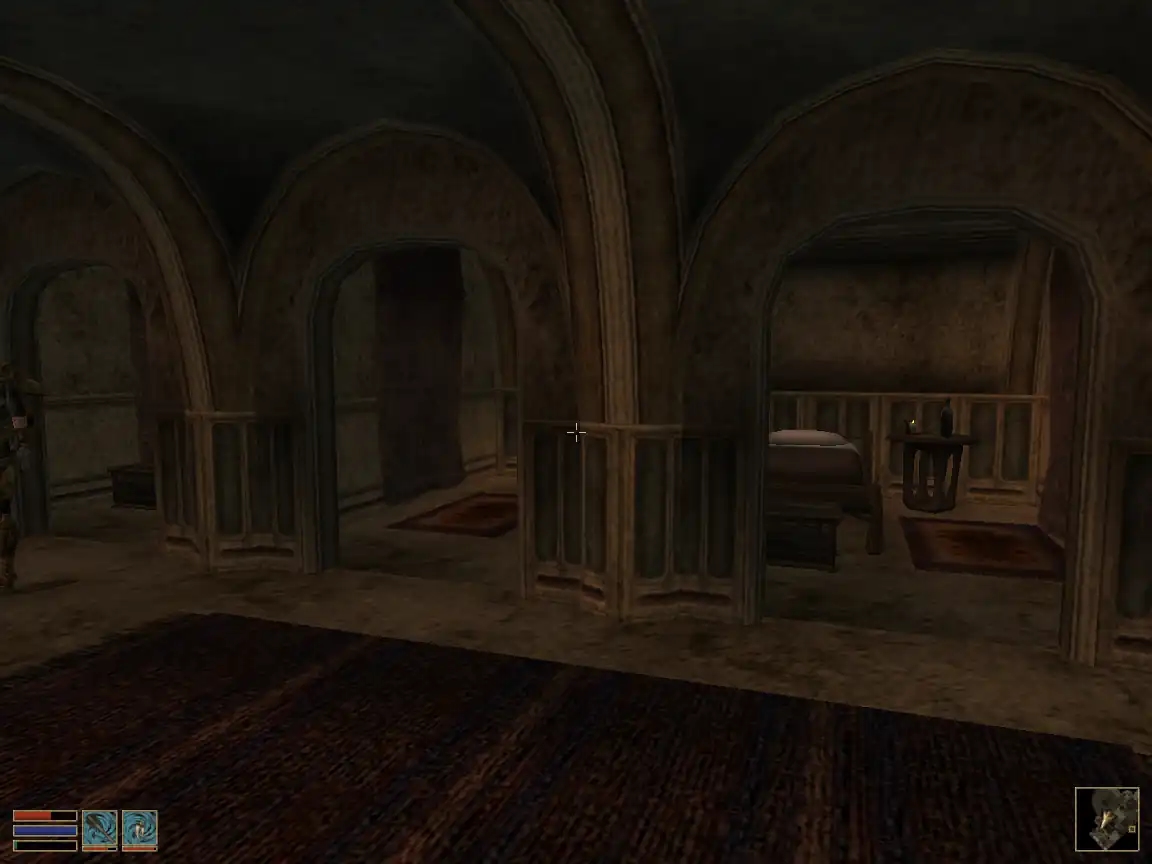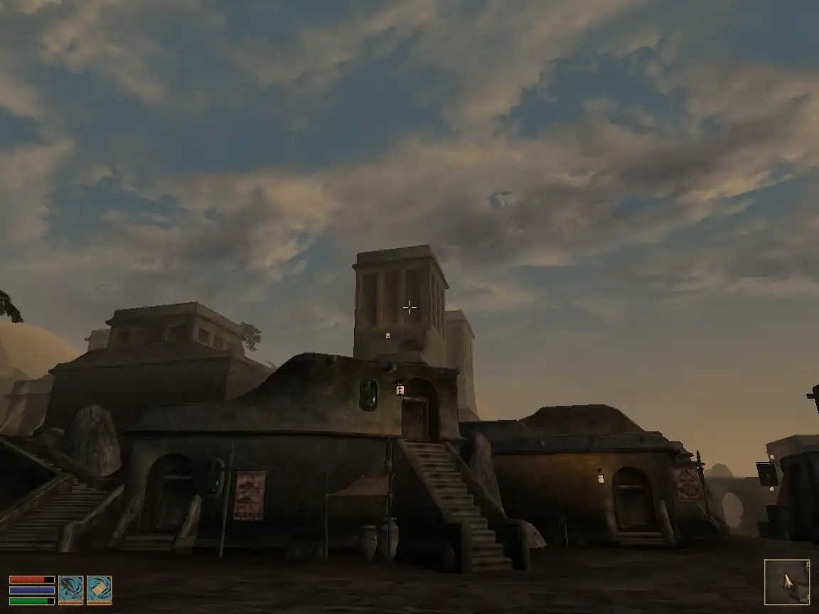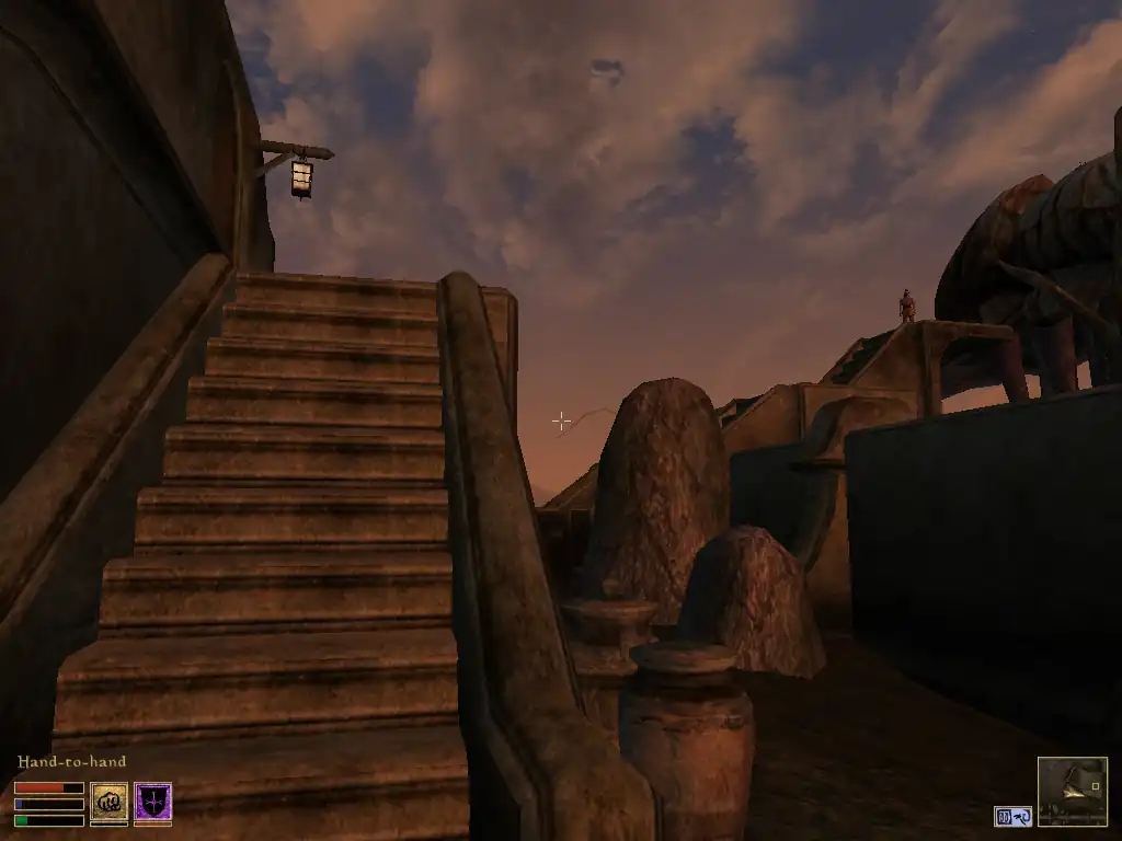 Далебі, це найбільша проблема гри (без огляду на етичність). Я казав про квести, що вони “оживлюють гру”, це так, но квести не існують осібно, окремо від НІПів, і якщо НІПи — мертві, то ніщо вже гру не оживить, ніякий, найкрутіший квест! А НІПи в “Моровинді” достоту мертві — вони картонні, статичні, вони частина декорацій. Раніше я цього не помічав навіть мавши приклад “Готики” під рукою, де НІПи живі та справжні. Та коли став перепроходити гру 20 років опісля, цей аспект впав ув око.
