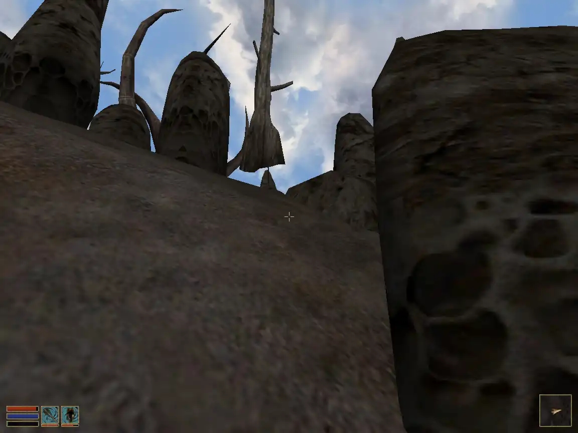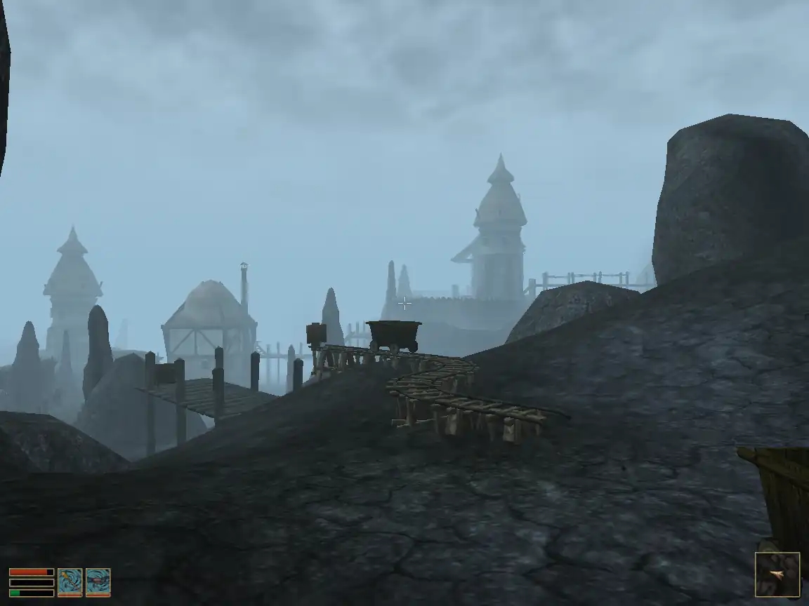 Обшир гри псує дивний дизайн, приміром, ландшафт. Я розумію, події розгортаються на вулканічному острові, та все ж, довкола жадної рівнини! — усе горбисте, повсюди якісь пригорки, пагорби, кучки, і між ними плетуться стежинки. З данмерами все ясно, вони напівдикий нарід, що живе в халабудах, но як імперії, ельфам вдалося щось збудувати на тій покрученій землі (та і навіщо)? Покажіть мі цих зодчих! Не инакше це двемери, які опісля виконання цього проєкту просто збожеволіли та втекли за обрій, чи втекли за обрій щоб не збожеволіти ¯\_(ツ)_/¯