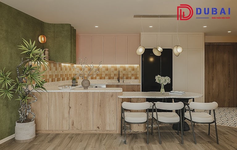 Từng góc nhỏ đều được tận dụng hiệu quả: tủ âm tường, giường đa năng, bàn ăn gấp gọn,… tạo nên một tổng thể tinh tế, hiện đại. Với phong cách thiết kế hiện đại pha chút tối giản, DUBAI cam kết mang đến cho bạn một tổ ấm đẹp mắt, tiện nghi và phản ánh đúng phong cách sống của chủ nhân.