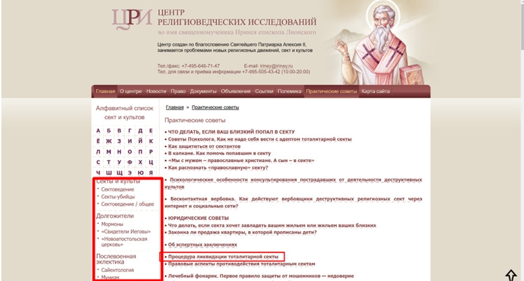 РАЦИРС, очолювана Олександром Дворкіним, позиціонує себе як захисника від “деструктивних культів”, але на практиці слугує інструментом РПЦ для дискредитації опонентів. З 2014 року її члени, як протоієрей Олександр Новопашин, прирівнювали українську державу до “тоталітарної секти”, заявляючи: “Війна в Україні – за душі, доки культ не припинено”. Євген Никофоров - директор православної радіостанції “Радонеж” йшов далі, закликаючи до “сонцепеківської зброї” для “спалення” України, виправдовуючи це “етикою Старого Заповіту”.