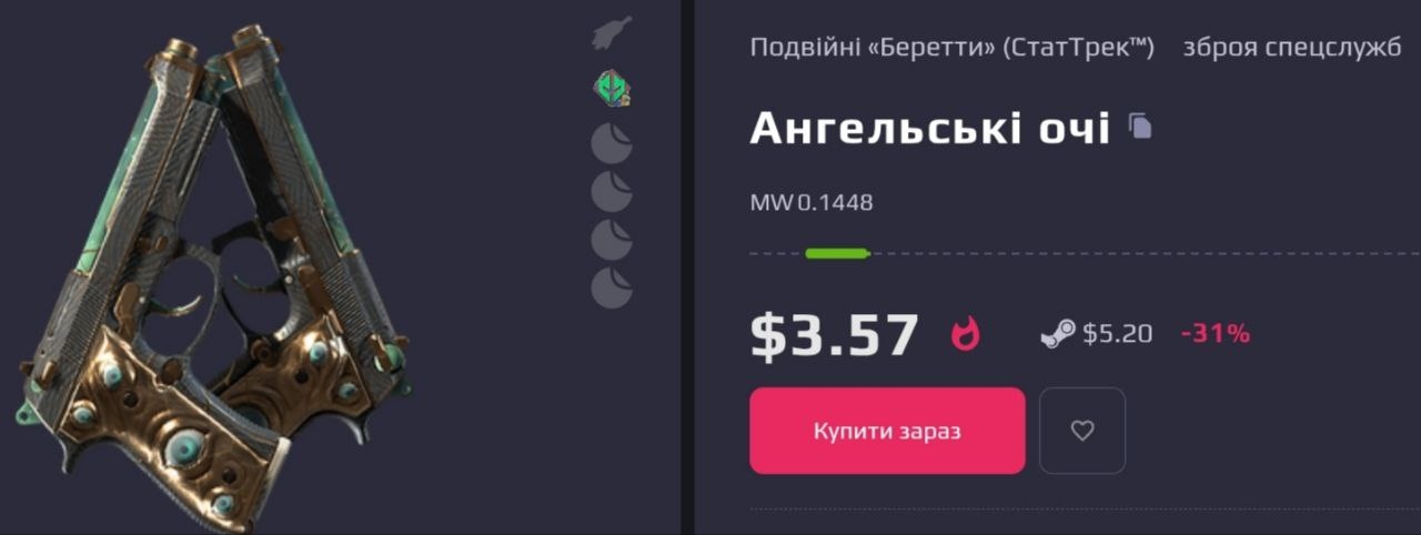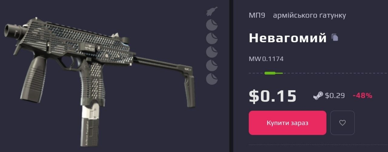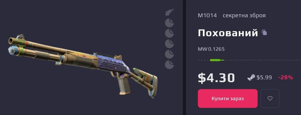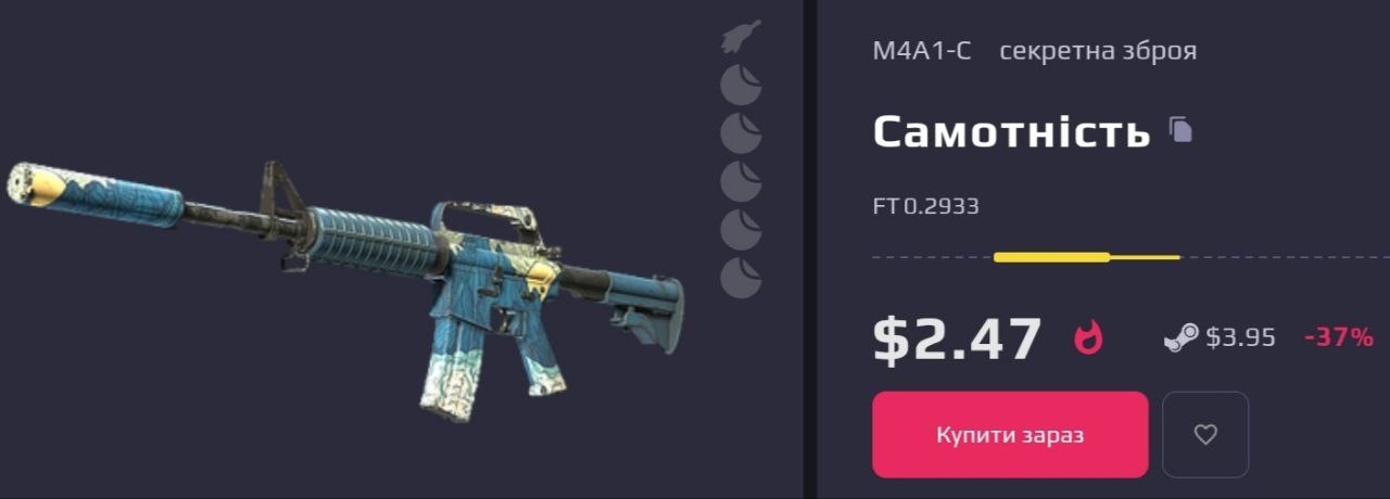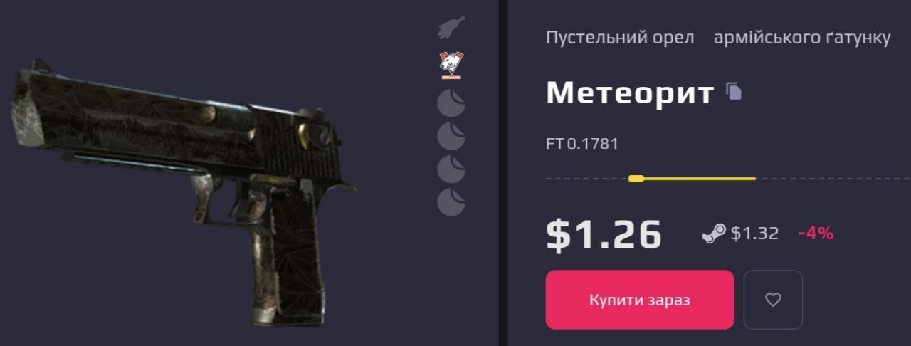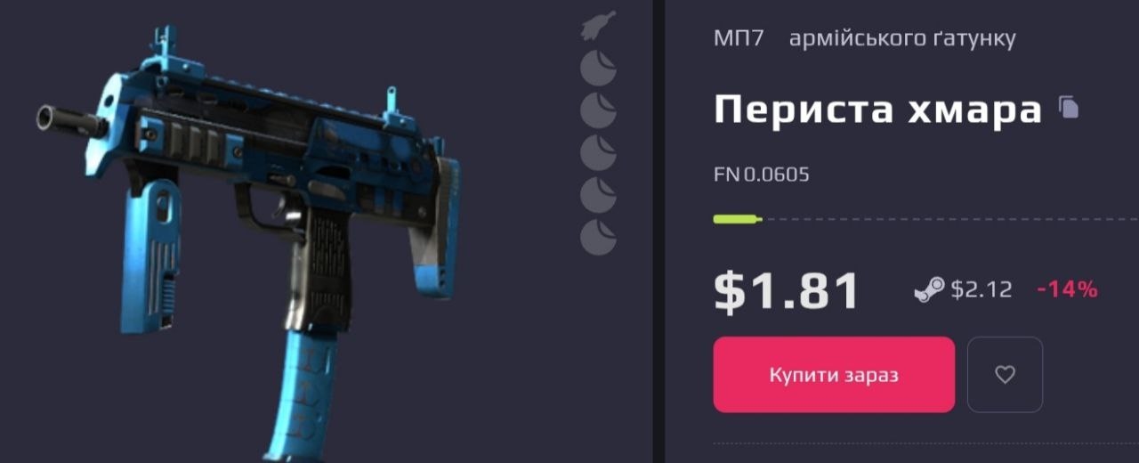 — валюта та кінцева ціна з урахуванням комісій.Порівняйте пропозиції різних продавців: ціна + float + фото + рейтинг продавця. Деколи дорожче на 5‑10 %, але кращий float або якісніший скрін — це вигідніше.