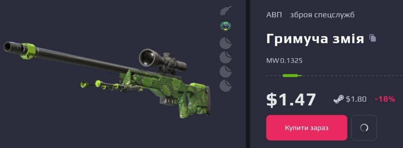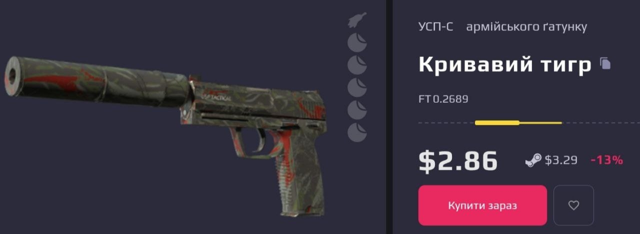 Якщо бажаєте — можу зараз підшукати 3‑5 найдешевших варіантів за конкретним скіном (вкажіть назву та максимальну ціну в доларах) українською.
