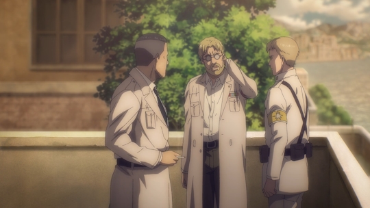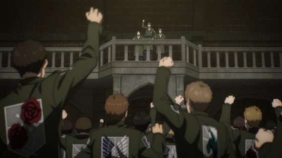 А що їм ще, пробачте за мою французьку, нахуй, залишається робити? Перерізати одне одному горлянки із криком “За родіну”? Зібрані тут елдійські солдати (Мікаса, Амін, Ханжі та Жан) вже зрадили своїй державі тим, що не підтримали єгеристів. Вони вже були налаштовані проти війни та геноциду всього живого за межами острова, і уявити, що вони в цьому доєднаються до марлійців, що хочуть врятувати свою країну або хоча б решту світу, не так вже і складно.
