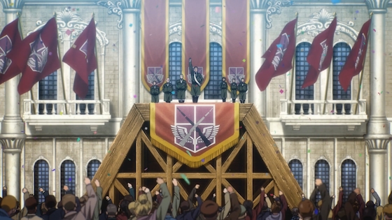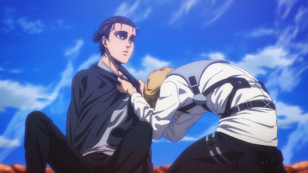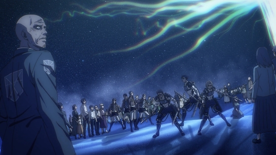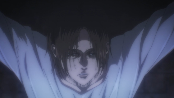 Іронічно, але саме у цій сцені Єлена проводить розбор польотів. Так, є вина Енні у знищенні Штогессу, є вина Арміна у знищенні порту в Ліберіо — ніхто з них не чистий душею. Елдійці та “марлійці” щиро ненавидять одне одного, Енні та Мікаса взагалі мало не повбивали одна одну на місці, але зараз ціль у них одна — зупинити Ерена та його ходячі стіни.