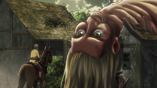 Таке уявлення могло б сформуватися, якби глядач не спробував поставити під питання природу титанів. Так, перший сезон залишає небагато простору для уяви. Навіть у першому сезоні в нас є Ханжі, що намагається дослідити, чим є титани, в нас є Енні та Райнер, що вже показали себе як розумні титани, такі самі як Ерен. Але вже другий сезон показує нам село Ракуґо, з якого походить Конні, і нам явно дають зрозуміти, що всі звичайні титани — це теж колись люди, кимось позбавлені волі та перетворені на гарматне м’ясо. Село спустошене і зруйноване титанами, але крові нема — ніхто не був з’їдений. Матір Конні, обернена на титана, впізнає і вітає свого сина.
