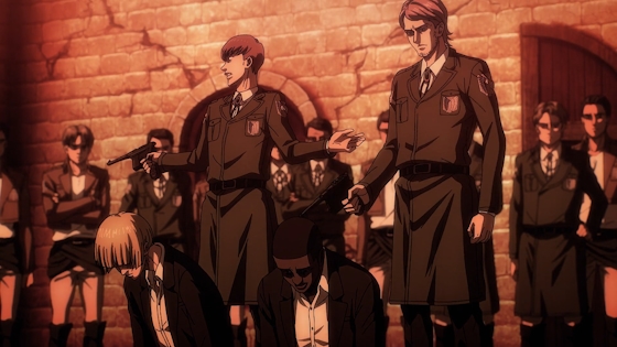 Це не зупиняється на Енні, смерть Бертольда виглядає так само жахливо. Попри ядерний вибух, що забрав життя багатьох розвідників, попри знищення Щиганщини руками Бертольда дев’ять років тому, смерть Бертольда від рук Арміна страшенно шокує Ерена і його друзів.
