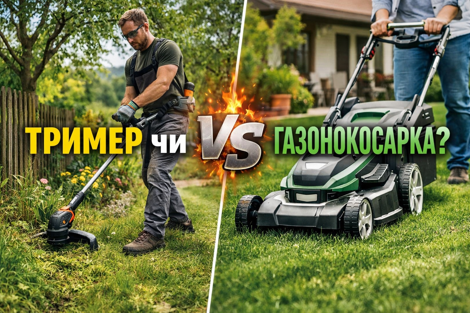 Єдиного універсального варіанту тут немає. Якщо у вас невелика, складна за формою ділянка, багато перешкод, нерівностей або потрібен інструмент для сезонних робіт без зайвих витрат — практичніше буде тример. Якщо ж основне завдання — регулярно доглядати за рівним газоном біля будинку, швидше і комфортніше працювати газонокосаркою.