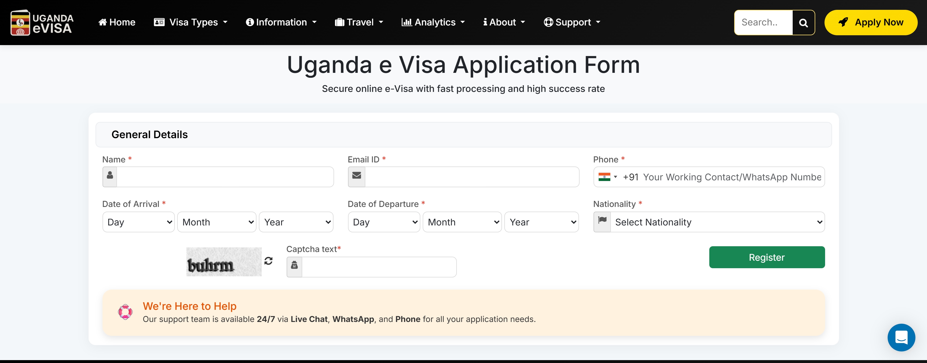 Choose Your Application Type: Go to the site, click "Apply," and select your visa type (e.g., "Ugandan ordinary/tourist visa").