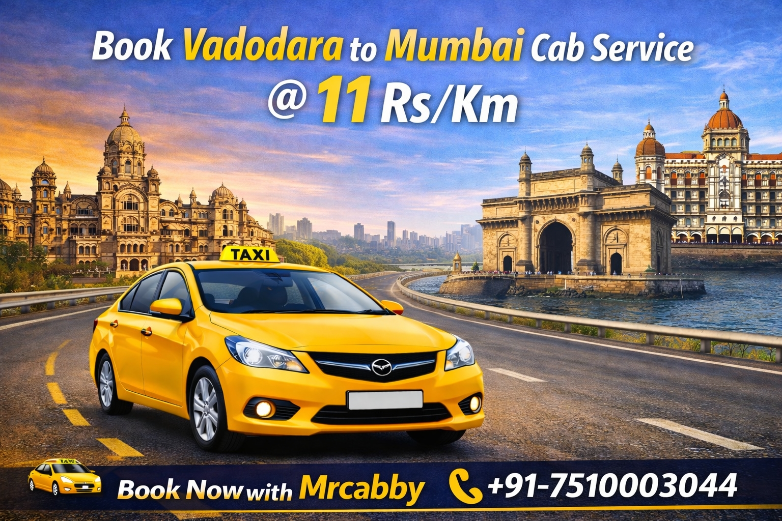 Traveling between Vadodara and Mumbai has never been easier. With Mrcabby’s reliable Vadodara to Mumbai Cab Service, you can enjoy a safe, comfortable, and affordable journey anytime. Whether you need a Vadodara to Mumbai taxi, Vadodara to Mumbai car rental, or a one way cab Vadodara to Mumbai, Mrcabby offers the perfect solution for all your travel needs.
