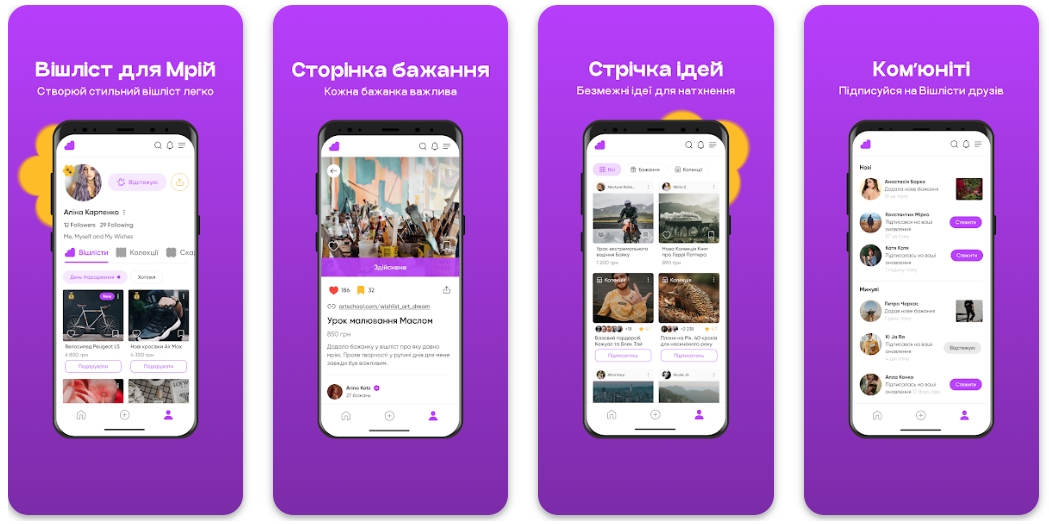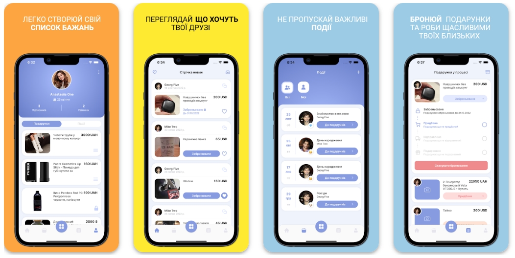 🎁 Wishlist — український мобільний застосунок для створення та керування вашими списками бажаних подарунків. В застосунку користувачі можуть бронювати побажання, щоб не повторюватись та навіть доставляти подарунки безпосередньо вашим друзям та родичам.