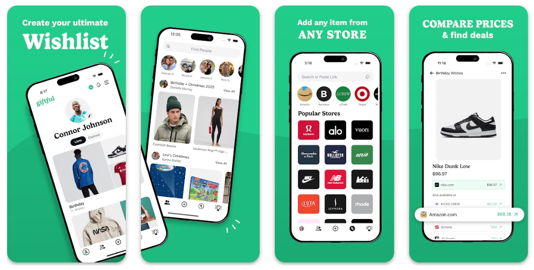 🎁 Giftful — вебсервіс і мобільний застосунок для створення і керування списками бажань. Сервіс пропонує необмежену кількість списків, просте додавання товарів через посилання або через розширення для браузера, підписуватись на списки друзів.