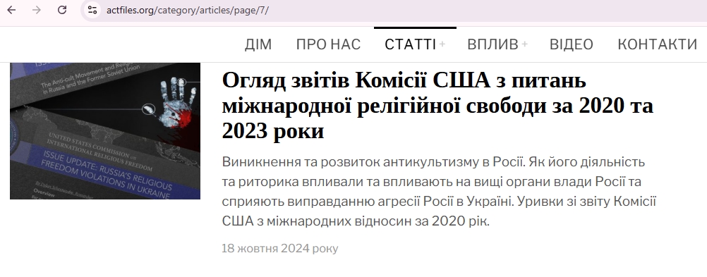 Цитата з “Огляд звітів Комісії США з питань міжнародної релігійної свободи за 2020 та 2023 роки”:
