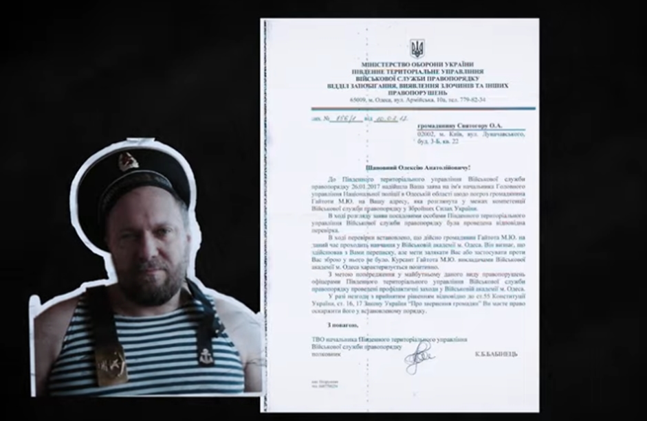 Також Святогор виклав відповідь Міністерства оборони України на звернення Святогора про погрози зі сторони військового.