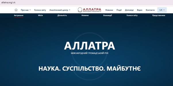 скрини з офіційного сайту Руху АЛЛАТРА <https://allatra.org/uk/press-releases >