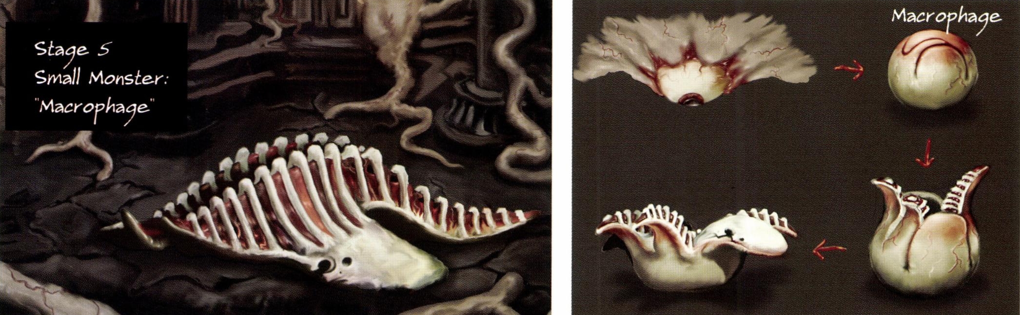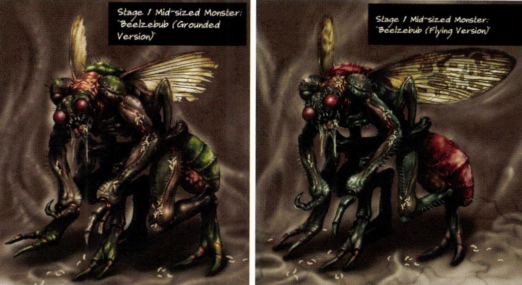 У плані ворогів команда так само мала зв’язані руки. Аби вписуватись у лор та атмосферу Resident Evil, вони всі мали бути результатами будь-яких генних та вірусних експериментів — інакше кажучи, або зомбі, або мутантами. Камії такі концепти були не до душі, однак нічого не поробиш. Одними з перших у проєкті гри народилися велетенські мухи, які не зазнали жодних змін (крім кількості полігонів у модельок) під час переходу в Devil May Cry із назвою “Вельзевули”.