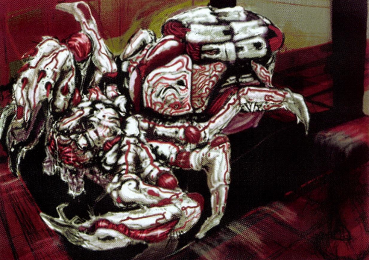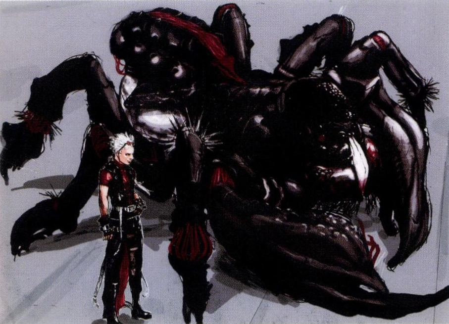До речі, гігантськими в цьому “стильному Резиденті” мали бути не лише мухи та амбіції творців, а й боси. Усі вони, до слова, благополучно знайшли собі місце в окремому Devil May Cry. Одним із них був павук-скорпіон, що врешті став лавовим Фантомом. Проте його прототип тримала не кам’яна броня та лава, а плоть із кров’ю.