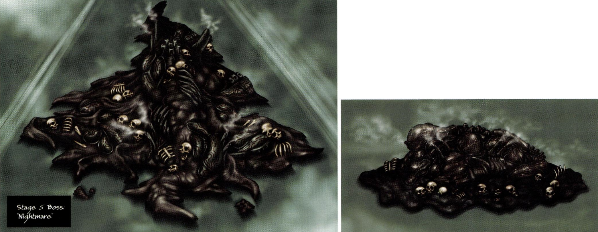 Але хто б міг подумати — лавкрафтівський Кошмар також розроблявся як бос на пізніх етапах крайнього Resident Evil! Тільки там він мав бути твердою лялечкою, всередині якої розвивався неназваний стародавній вірус. Тверда лялечка – це броня Кошмара в першій грі Devil May Cry, яка мала розкриватися та атакувати липким тілом з черепами ще за часів її прототипу. Правда, тоді бачення цієї істоти розділялося у різних членів команди — дехто думав, що атакувати буде сама жижа, а дехто уявляв вильоти ракет з розкритої лялечки…