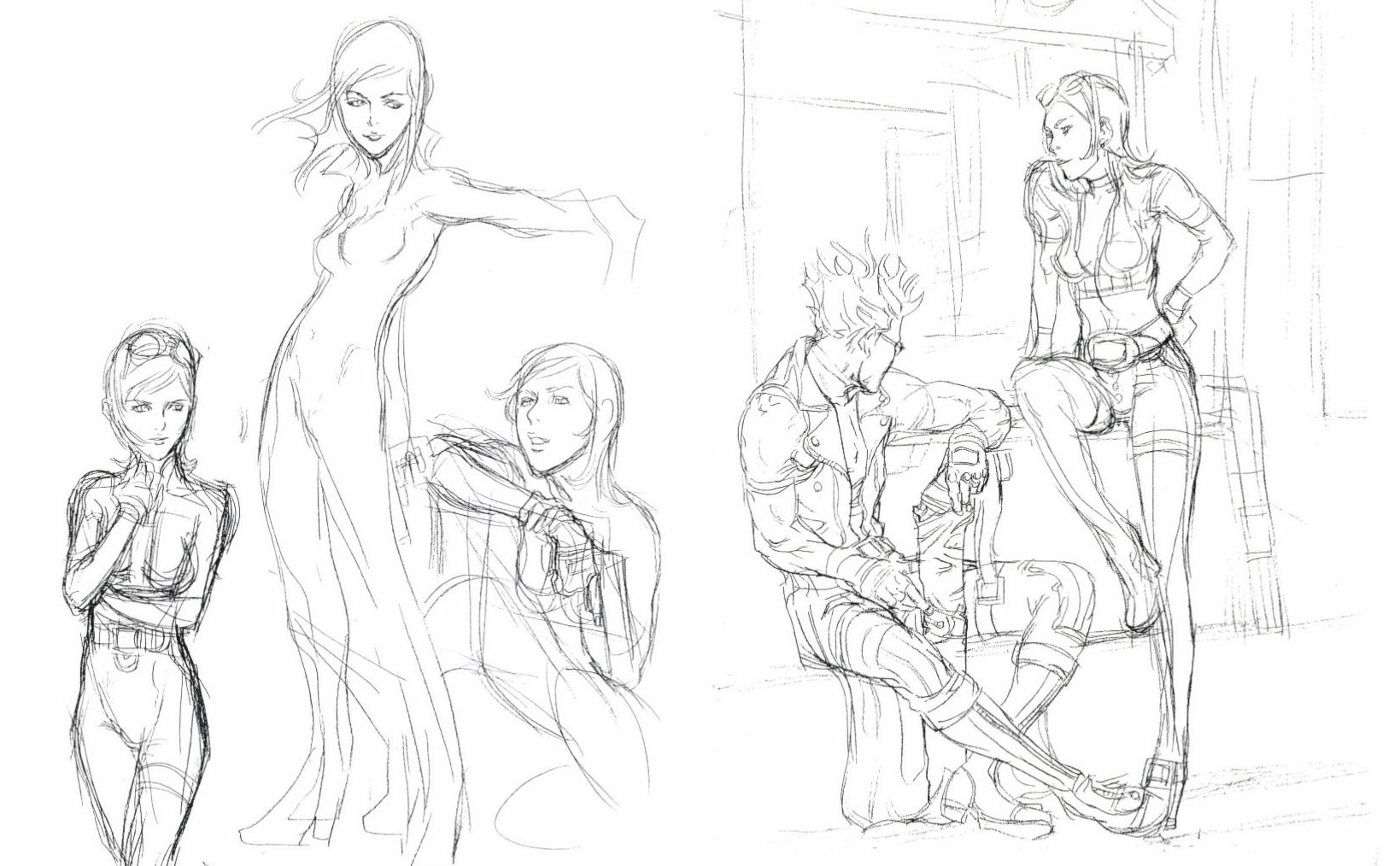 Вбрання Аїші було цілим спектром: від синьої шубки з капюшоном до латексного костюму байкерки з мотивами блискавки, як можна побачити на артах нижче. За винятком зовнішності, робота з жіночою персонажкою не просувалася від слова взагалі. Весь її образ на всіх етапах розробки можна описати однією цитатою моушн-дизайнера Томої Оцубо: