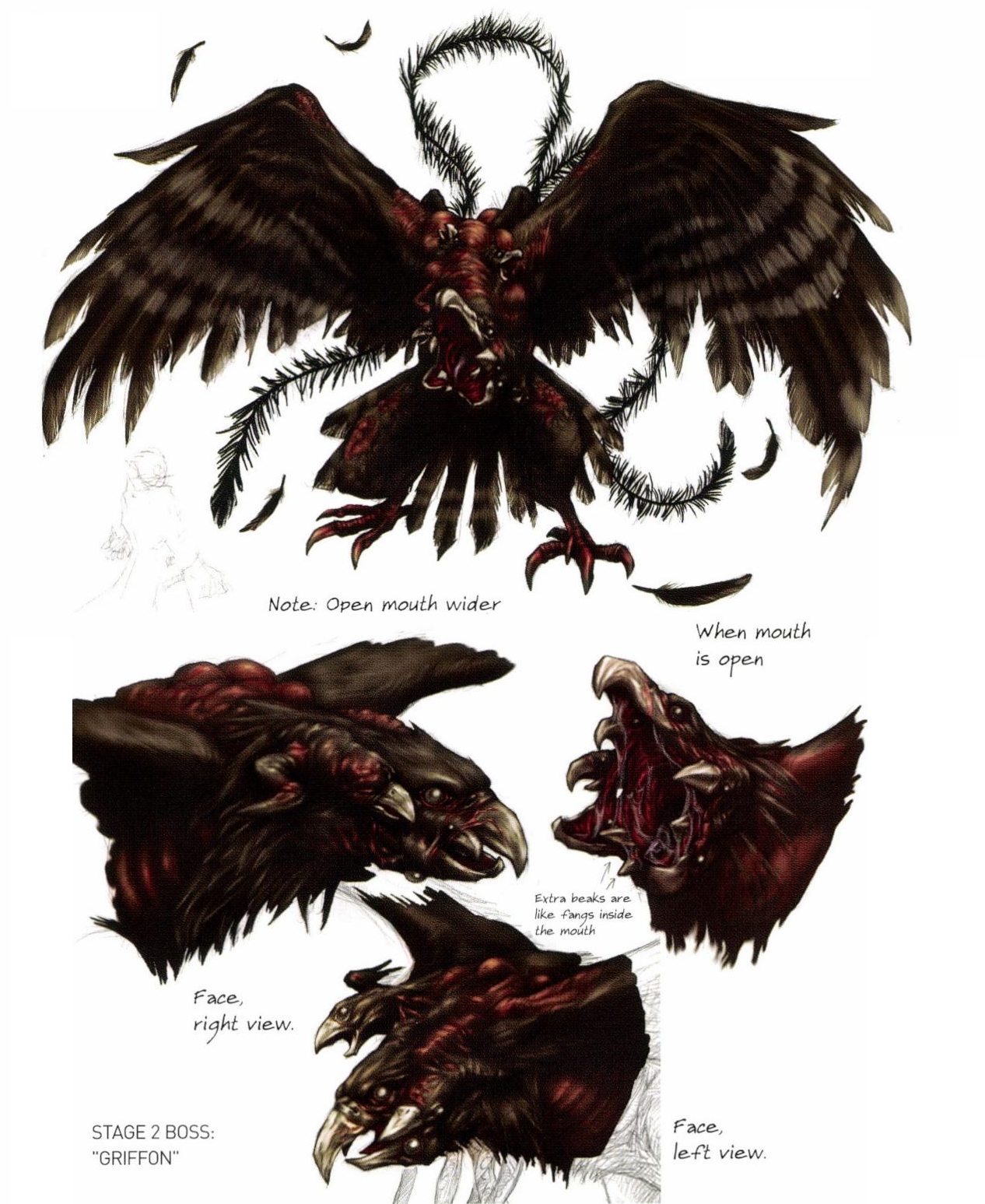 Найменше змін пережив Грифон, якому дизайнери просто залатали дірочки та вилікували зомбі-вірус. Кілька голів та пар крил у нього залишилися з часів роботи над RE.