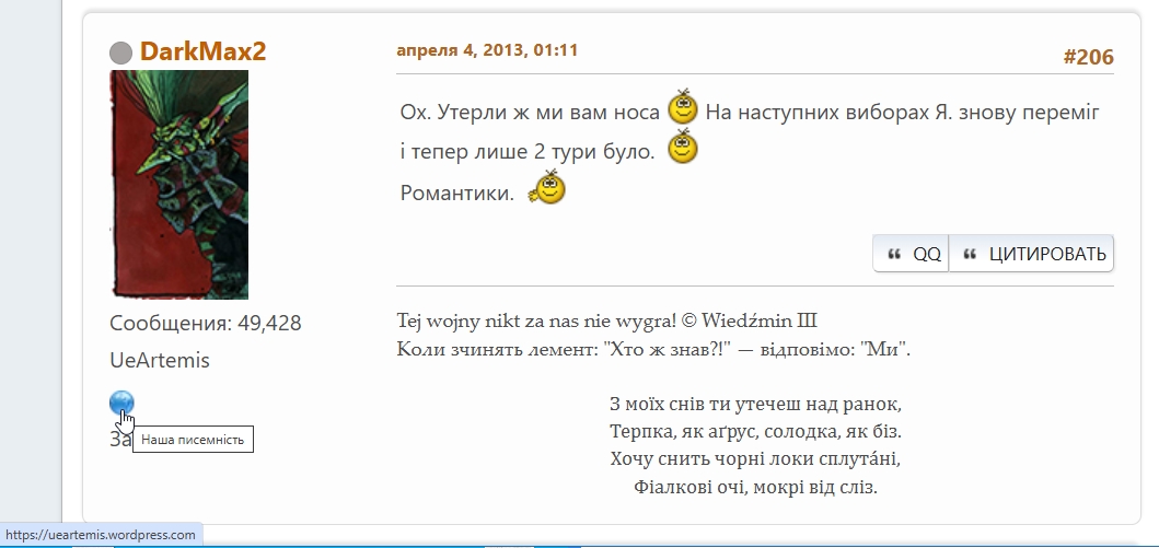 Вікіпедиста Максим Безрук (UeArtemis) ЧУДОВО вписується в цюю “опозицію” до українського народу: