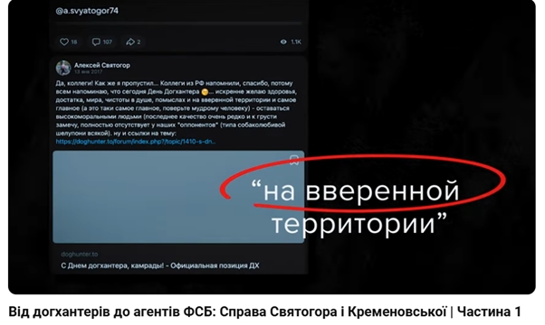 Відомо, що згодом догхантери Кременовська та Святогор у 2017 році створили медіа ресурси для просування в Україні наративів фсбешної мережі РАЦИРС.