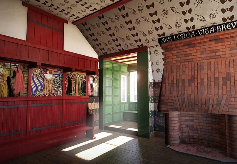 Коли роботи завершилися, до Червоного будинку приїхали друг Морріса по Оксфорду, художник Едвард Берн-Джонс із дружиною Джорджіаною, а також його учитель і соратник, художник Данте Ґабріель Россетті із дружиною-художницею Ліззі Сіддал. Всі вони брали участь в оформленні інтер’єрів будинку: малювали фрески на меблях, стінах і стелі, а Морріс створював перші ескізи для шпалер, тканин і гобеленів.