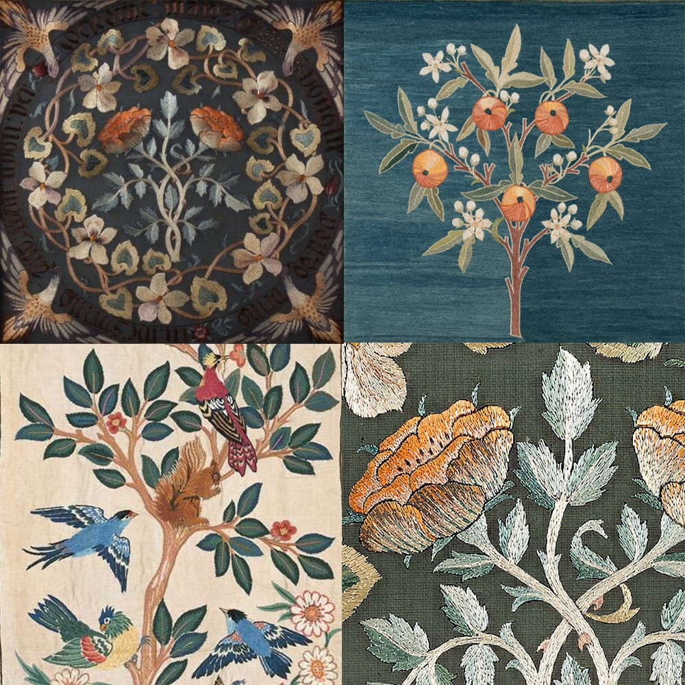 Особливе місце займає Мей Морріс, молодша донька Морріса — видатна художниця з вишивки і дизайнерка текстилю, котра перетворила ручні шви на справжню орнаментальну поезію й фактично створила нову мову декоративного мистецтва в межах руху.