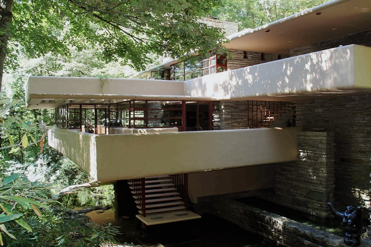 Кульмінацією цієї філософії став будинок Fallingwater у Mill Run, Пенсильванія — легендарний «дім над водоспадом». Його тераси вирішено у вигляді горизонтальних каскадів, що буквально виростають із кам’яної платформи над струмком. Тут архітектура більше не декорує природу — вона стає її продовженням, зливаючи ландшафт, воду та людське житло в єдину гармонійну композицію.