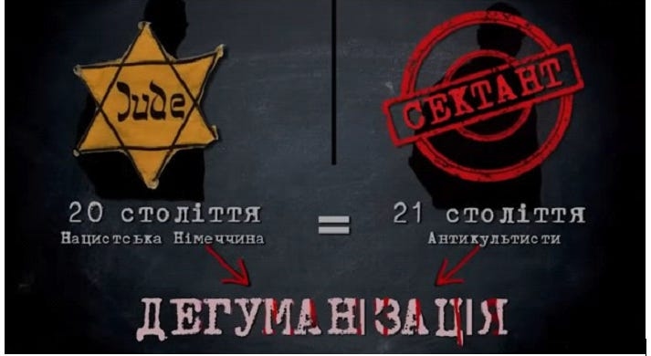 текст скрина: “Секти немов бур’яни, які потрібно виривати з корінням. Спойлер. Тим, хто наліпили собі символіку благотворчого суспільства, готуйтеся здирати це паскудство зубами. Часу зовсім. Обмаль.”