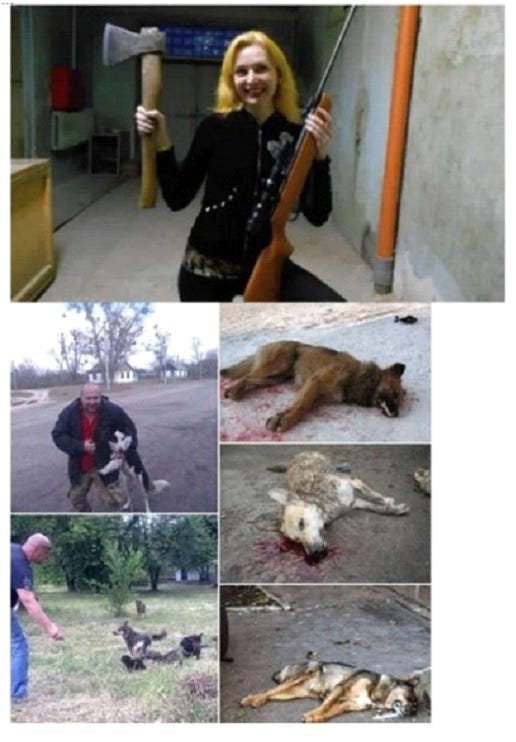 Але що казати, вона вбивала садистськими методами. Навіть собак не шкодувала. Що тоді казати за людей, як і тих, хто говорить правду про неї і її москальських подільників.