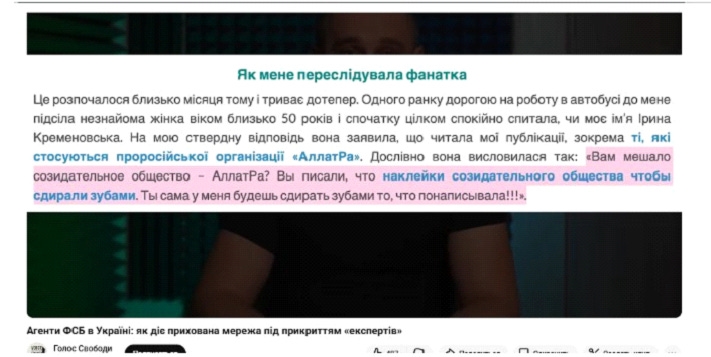 Для довідки цей сайт Кременовської - це ще одна діч фсбешної РАЦИРС на просторах українського інтернету. Ще я не знаю, як його не закрили до читання.