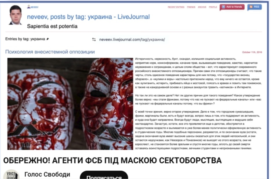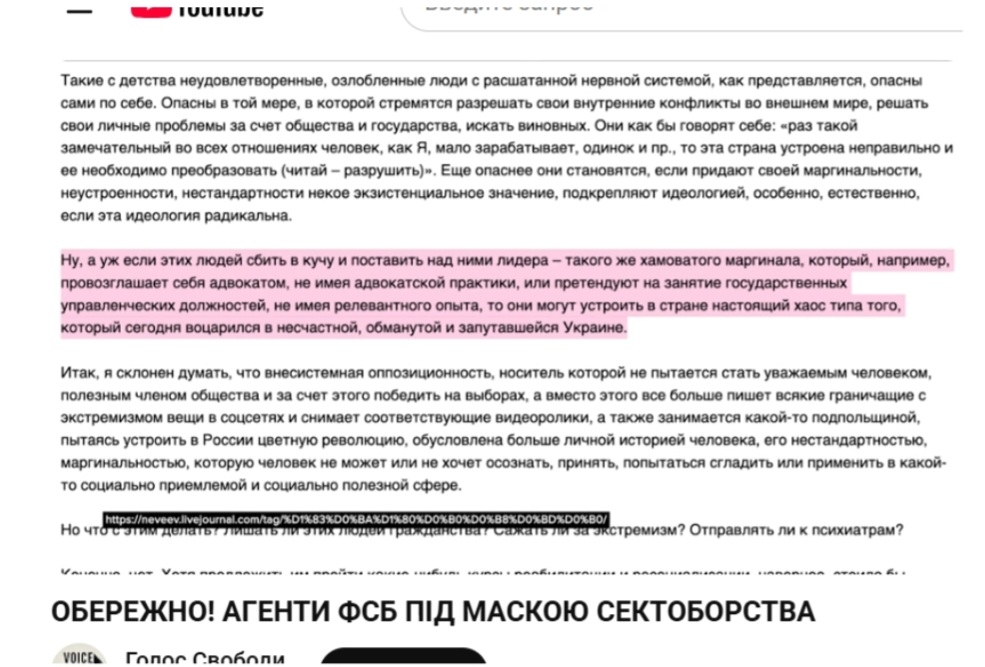 І ця експертка фсб Кременовська зазиває українців на його ресурсах читати його статті про секти. Кременовська ще з 2014 року тому посилається на Невеєва та просуває його, вона не могла не знати про те, кого вона просуває.