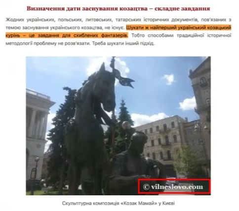 цитата зі скрина: “Українського окремого козацтва не існувало. Було татарське козацтво. А тут українські козаки, як перевертні, набралися всього ворожого татарського.”