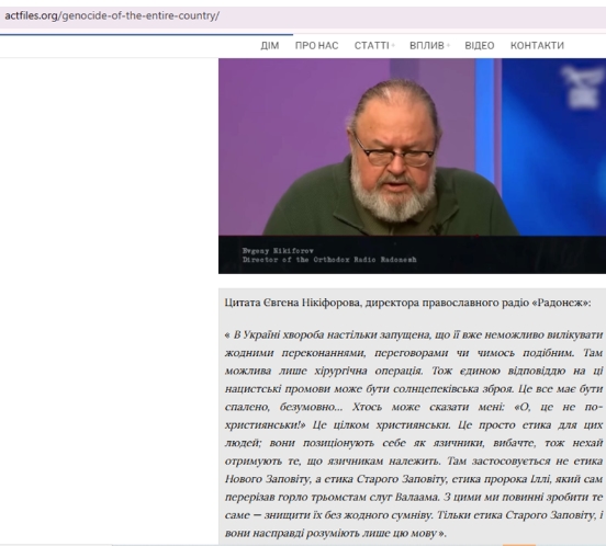 Вони говорять, що Україну потрібно випалювати. Називають це старозавітною етикою, бо ми, мовляв, язичники. Вони відкрито відрікаються від Нового Завіту, від заповіді «Не вбий».