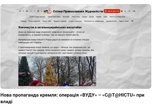 Є ресурс — СПЖ. СБУ накрила його за роботу на ФСБ. Цей ресурс написав статтю про те, що нібито Україна — язичницька країна, бо наш Президент записав Різдвяне звернення на тлі Дідуха.