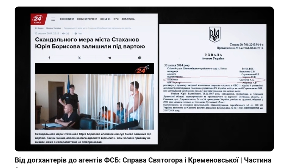 Борисов, якого захищав Святогор, відповідальності не поніс, а згодом був обміняний і тепер живе на тимчасово окупованій території, підконтрольній РФ. Ось така "адвокатська робота".