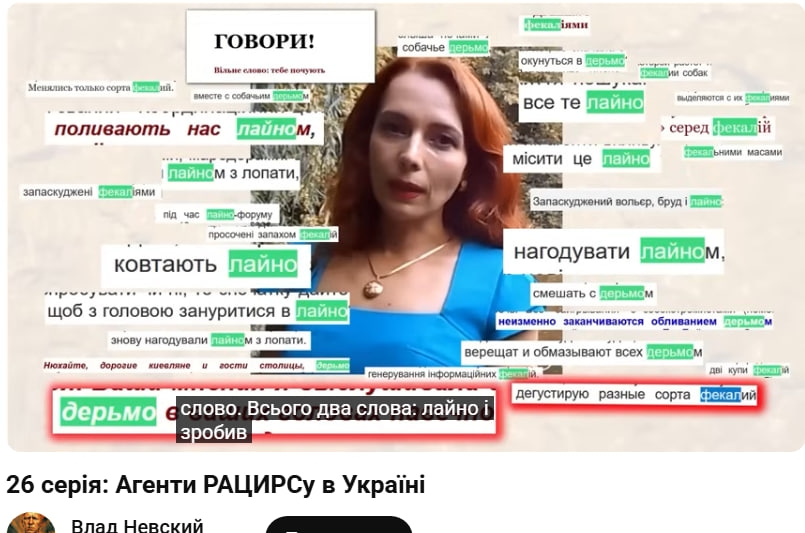 Українці зробили колаж із цих слів, зібрав докупи, щоб ви змогли роздивитися всю палітру коричневих барв, де слова чи словосполучення взято з публікації Кременовської та Святогора на сайті «Вільне слово» — усе звідти, нічого не вигадав. Це вже не смішно реально. Та й справді, РАЦИРС - секта копрофілів.