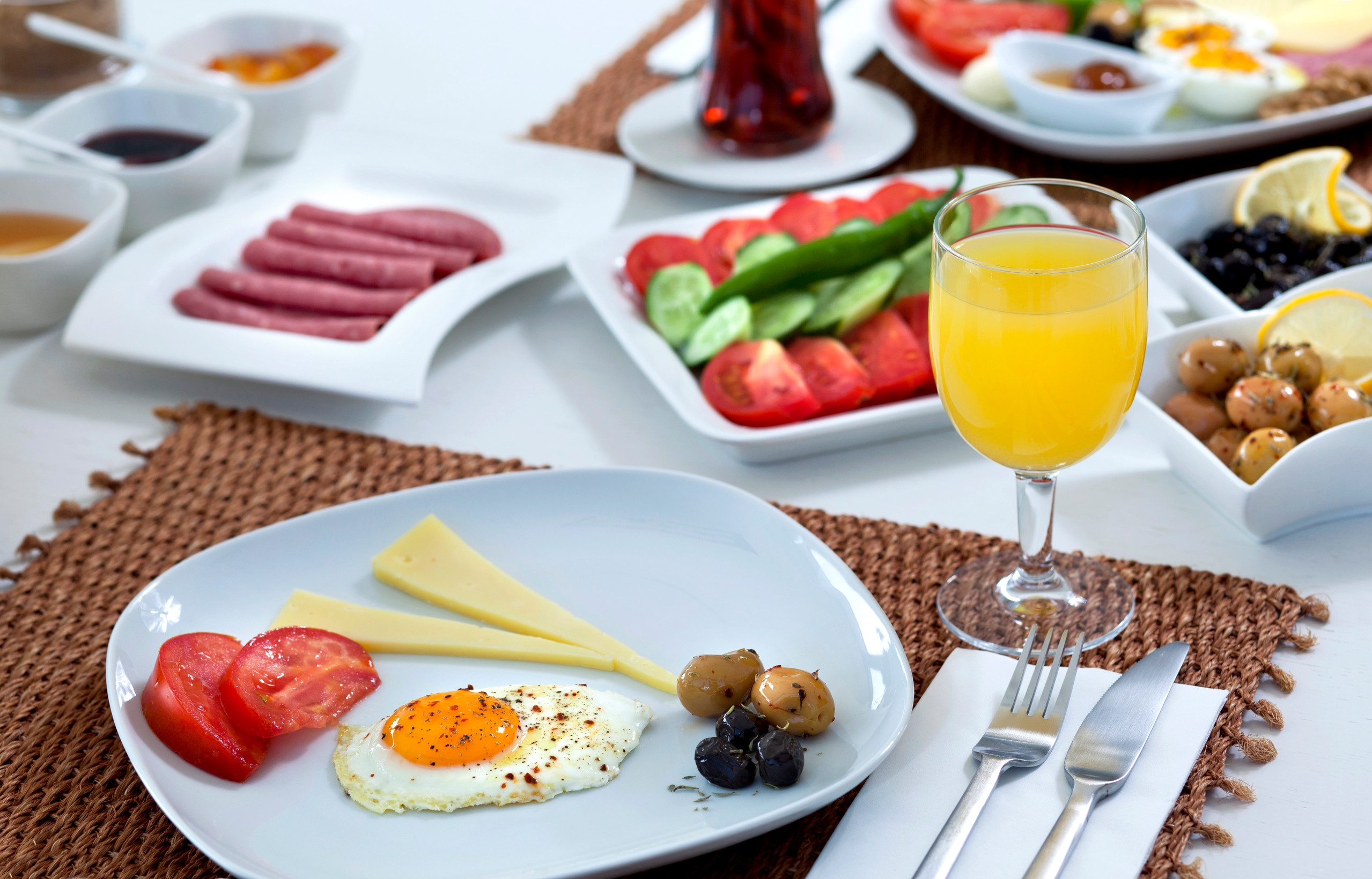 Turkish Breakfast (Kahvaltı): A lavish spread of cheeses, olives, fresh bread, honey, jam, tomatoes, cucumbers, and eggs.