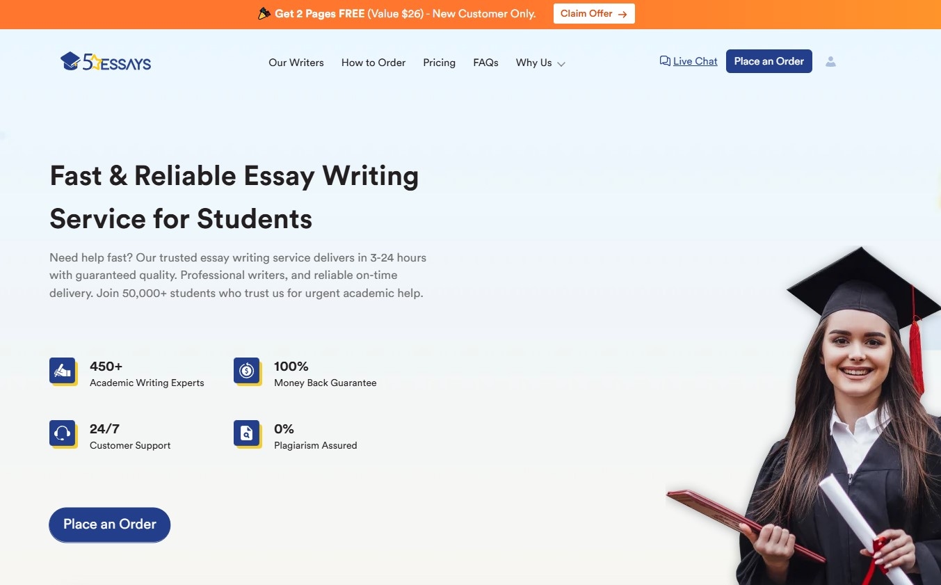 Over the past few years, 5StarEssays.com has become one of the most talked-about essay writing sites for students who want reliability and originality. Every order is written from scratch by expert writers who specialize in different academic fields. These professionals understand university expectations and always ensure the final paper meets proper formatting, tone, and citation standards.