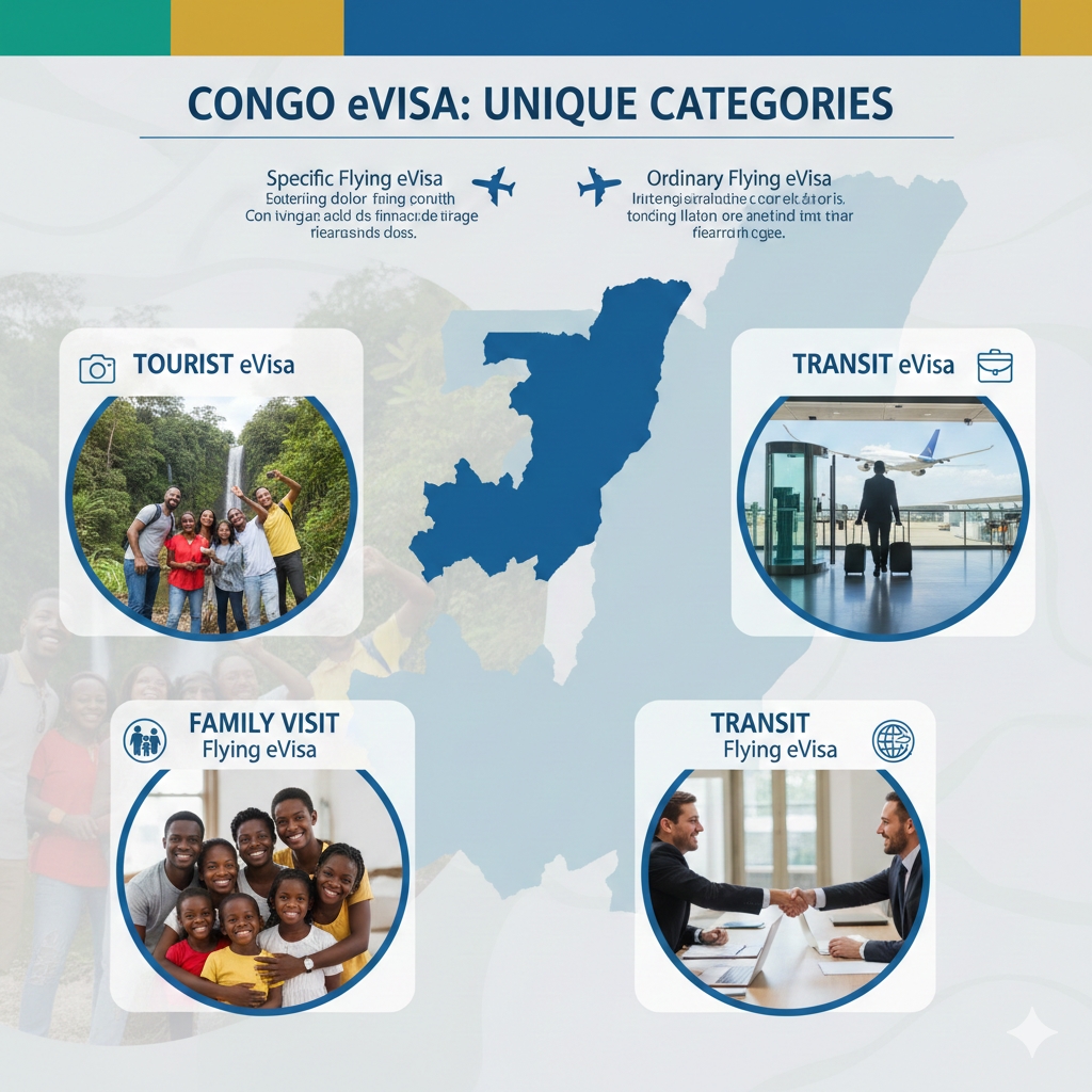 Family Visit Flying eVisa: For visiting close relatives residing in the Republic of Congo.