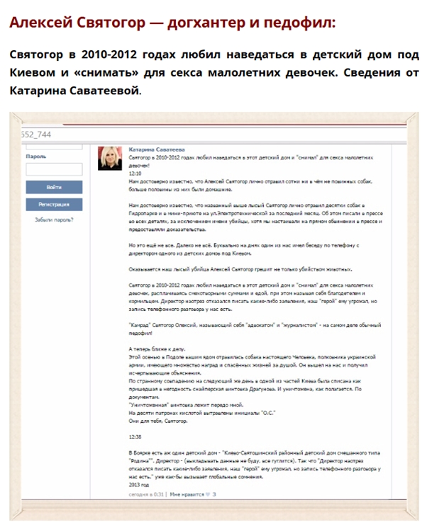 скрин щодо свідчень, що Святогор - поплічник Кременовської - пед00філ