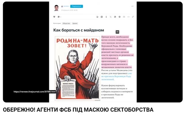 Пост Невеєва за рік до самопроголошення “експертів” з сект Кременовської та Святогора