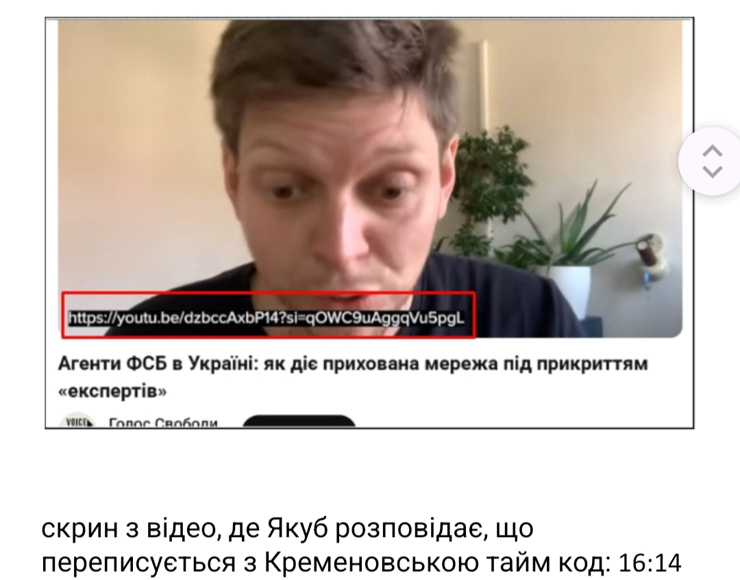 Ось ще один приклад сам Якуб підтверджує, що вони пов'язані: “можу вам підтвердити, що сьогодні я отримав мейл. Після того минулого відео я вирішив написати цій Кременовській в Україні. І взагалі це зайняло якийсь час. Спочатку вона не відповідала, а потім мені відповіла. Я поставив їй питання, і вона підтвердила.”